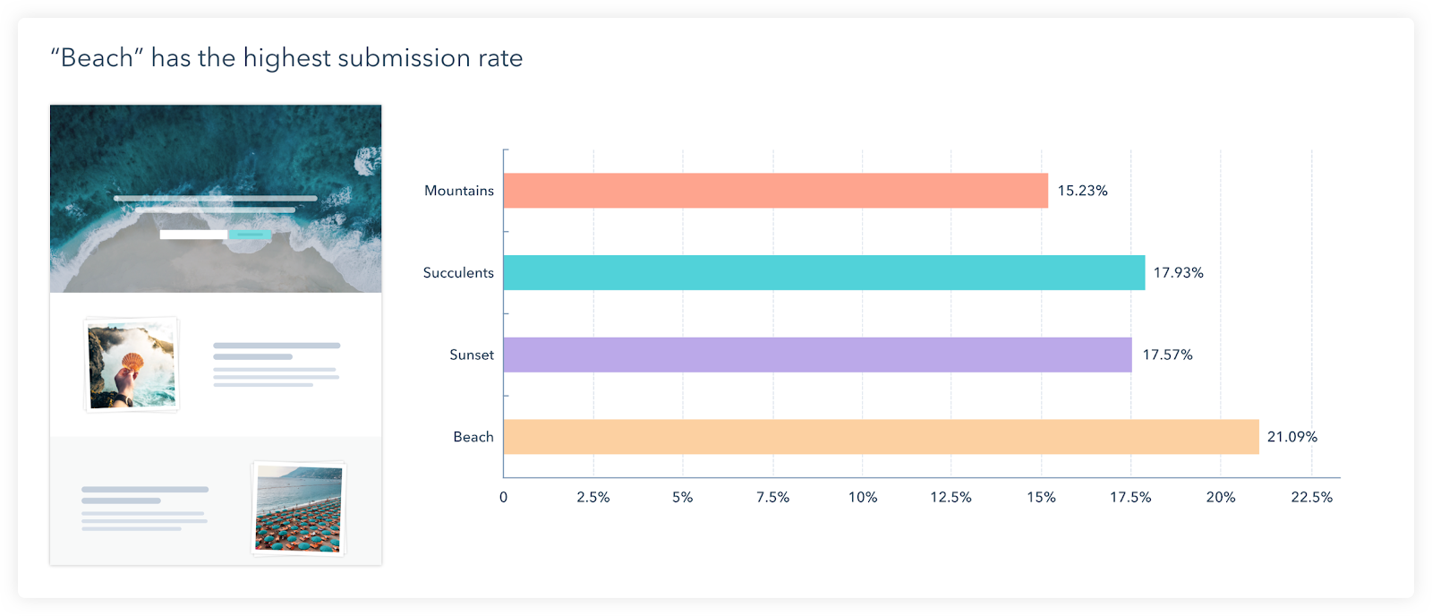 With adaptive testing, artificial intelligence automatically and constantly optimizes your website for you. For example, if you're reviewing four versions of the same web page, HubSpot will split the audience evenly and display the different options randomly. As more results begin to appear, artificial intelligence will automatically distribute traffic to show the versions that are better accepted by users. This way, you avoid having to wait for the end of the test to make a decision.